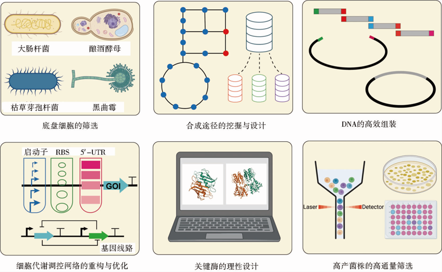在微生物细胞工厂的构建过程中,需要解决诸多挑战。例如,超过99%的已知微生物难以在实验室培养,且易出现生长速度缓慢、编码基因不表达等情况;其二,天然产物的生物合成水平较低,野生型菌株的次级代谢产物合成水平通常在mg/L水平或更低,造成了活性天然产物分离鉴定和活性测定的困难。